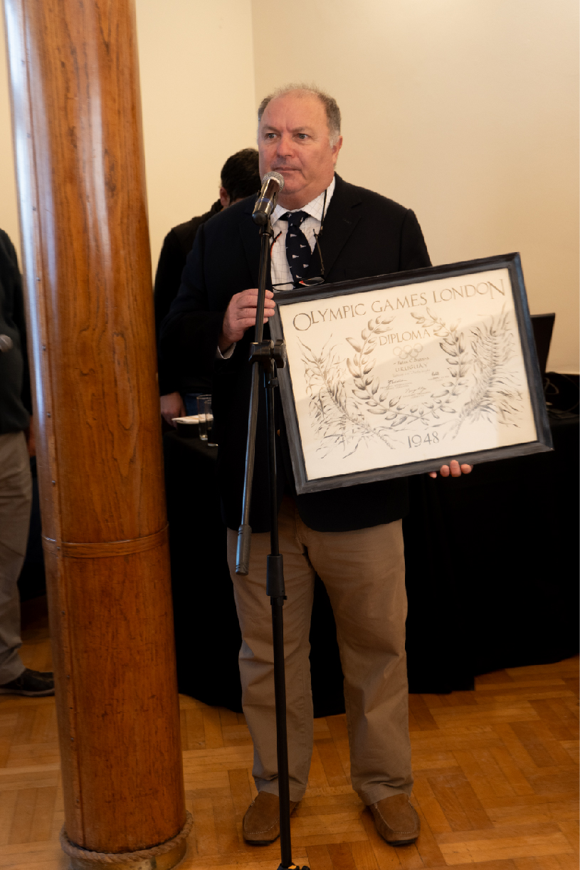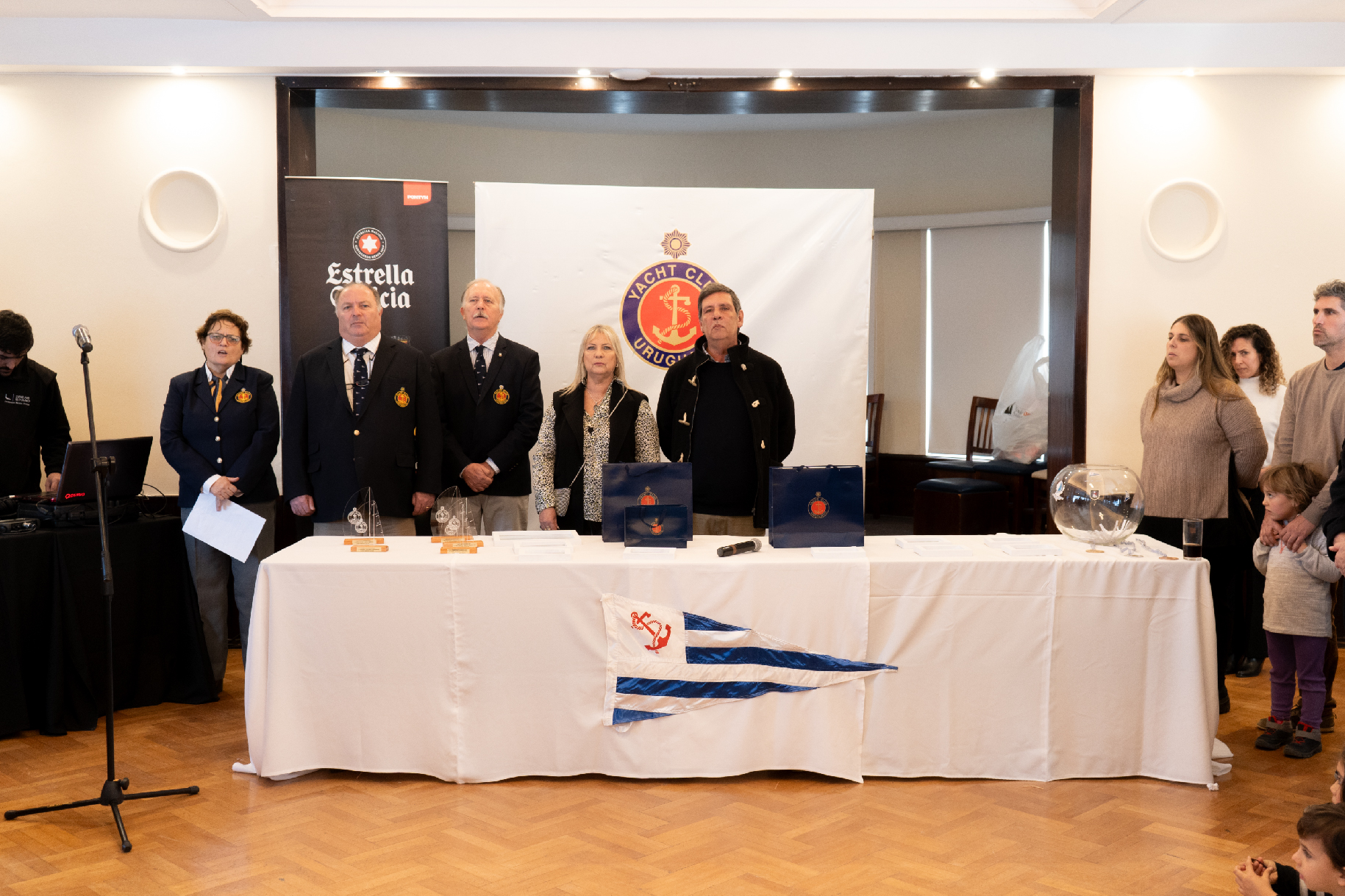 Durante esta ocasión única, se llevó a cabo un emotivo homenaje al distinguido Socio Honorario Dr. Félix Sienra Castellanos, cuyo legado perdura en las velas que ondean en el horizonte. Su nombre quedará inmortalizado en el salón principal de eventos, recordándonos su valiosa contribución a la riqueza de nuestra historia marítima. Además, un gesto de generosidad y orgullo familiar se unió a la celebración, ya que los familiares del Dr. Félix Sienra Castellanos entregaron al Yacht Club Uruguayo un diploma en honor a sus destacadas participaciones en las Olimpiadas de Londres de 1948.